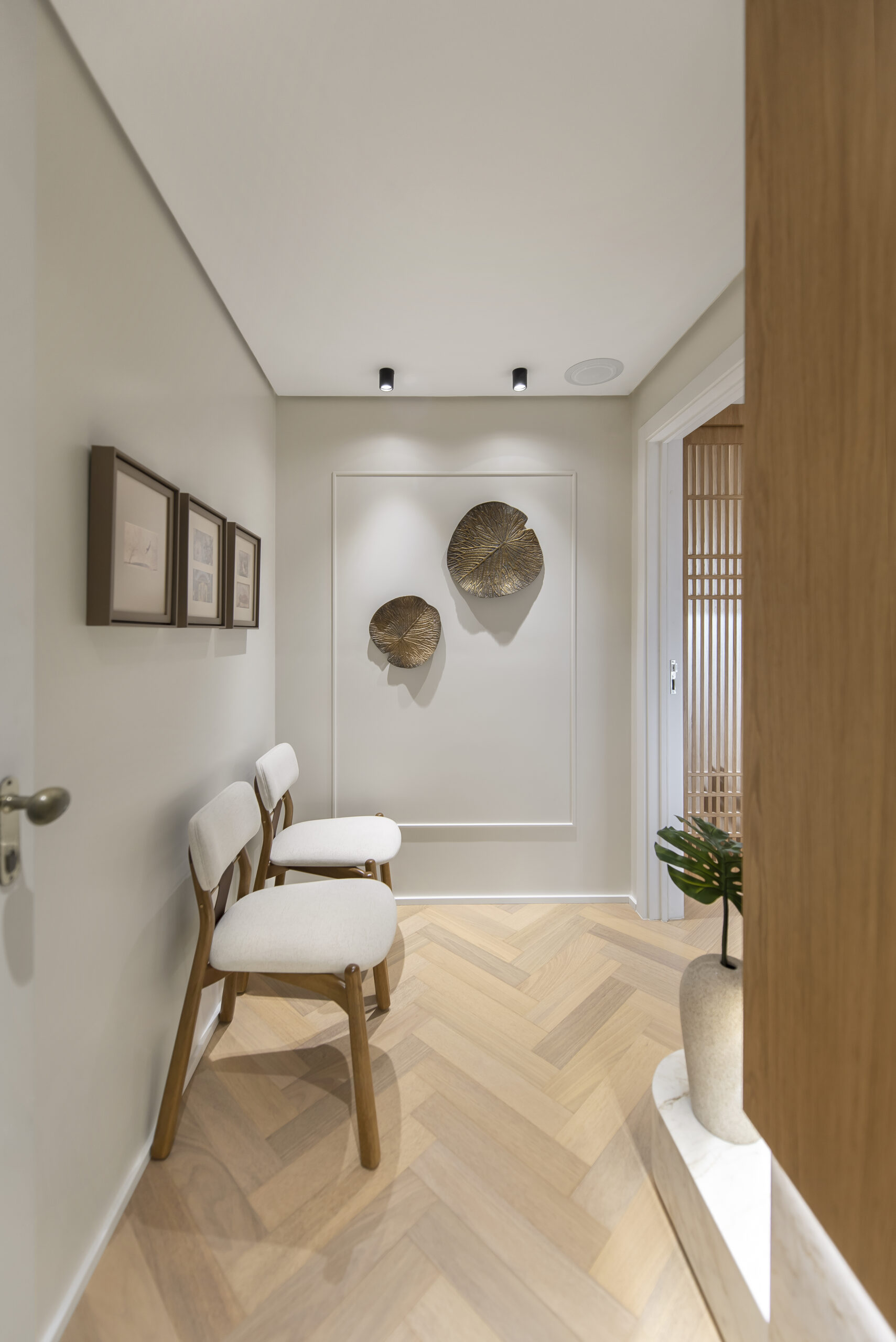 A restauração afetiva do estresse é a sensação de segurança e acolhimento é imprescindível para a profissional que queria seu espaço de atendimento como um sentir-se em casa. Esse conceito norteou todas as nossas decisões e escolhas do projeto. As formas orgânicas e arredondadas provocam as sensação de abertura e de cuidado a quem entra e se envolve nesse ambiente.