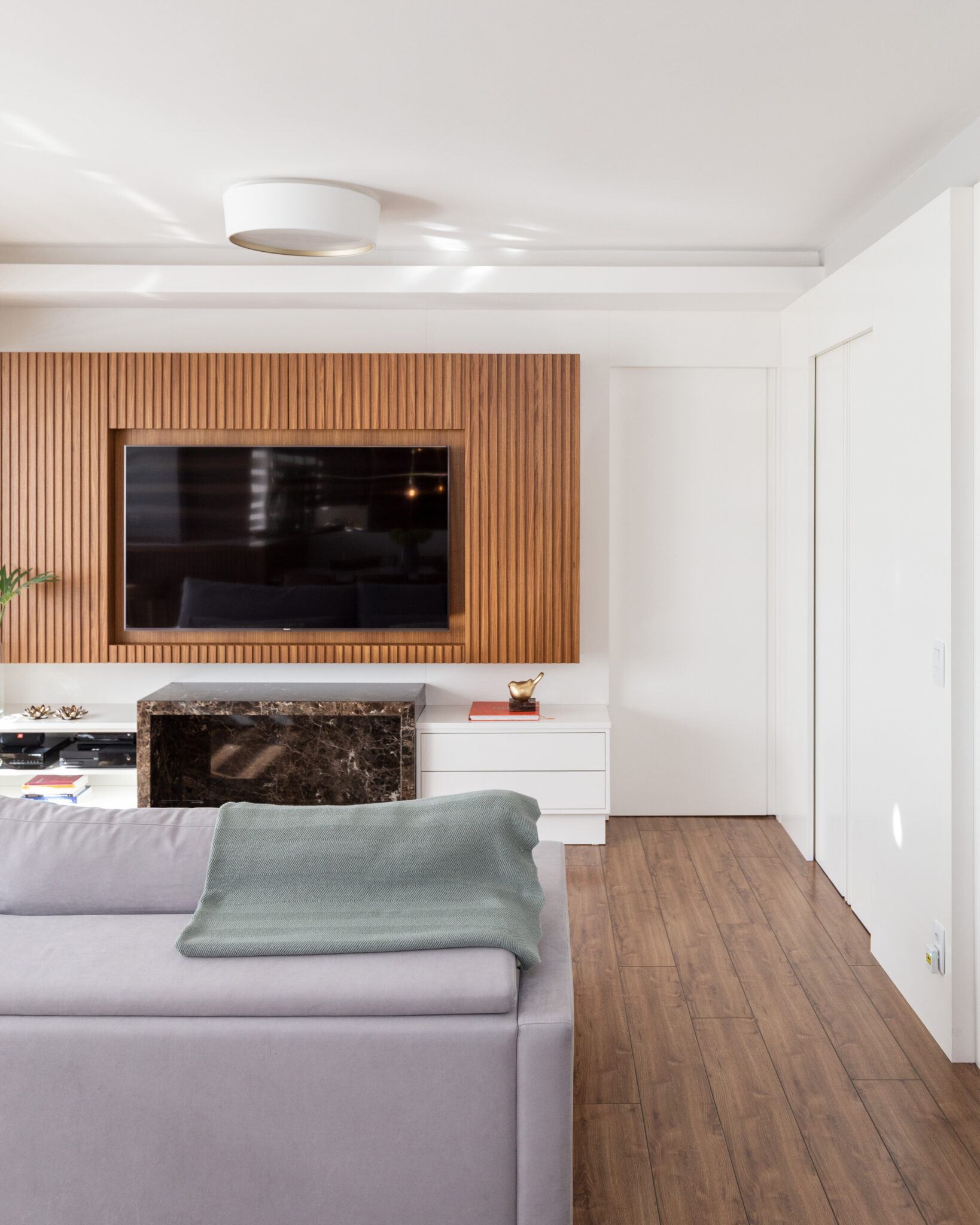 Um apartamento banhado de luz natural já é um grande aliado para o bem estar, e nesse projeto trouxemos as cores e materiais naturais para ir além na ideia de pedaço do paraíso.