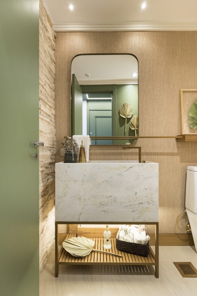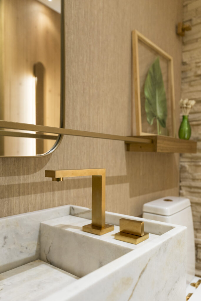 Ainda assim, detalhes mais sofisticados como o metal dourado e mármore trazem elegância em uma boa medida.